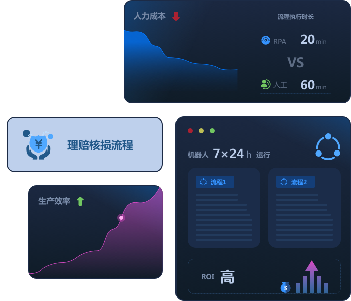 机器人可7*24小时不间断工作,高效完成流程工作,提高企业生产效率