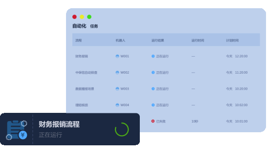 无需人工干预,后台机器人可通过定时任务或事件触发运行流程,可7*24小时自动化调度工作,可以完美地取代人力的投入,高效完成重复且有逻辑性的工作。