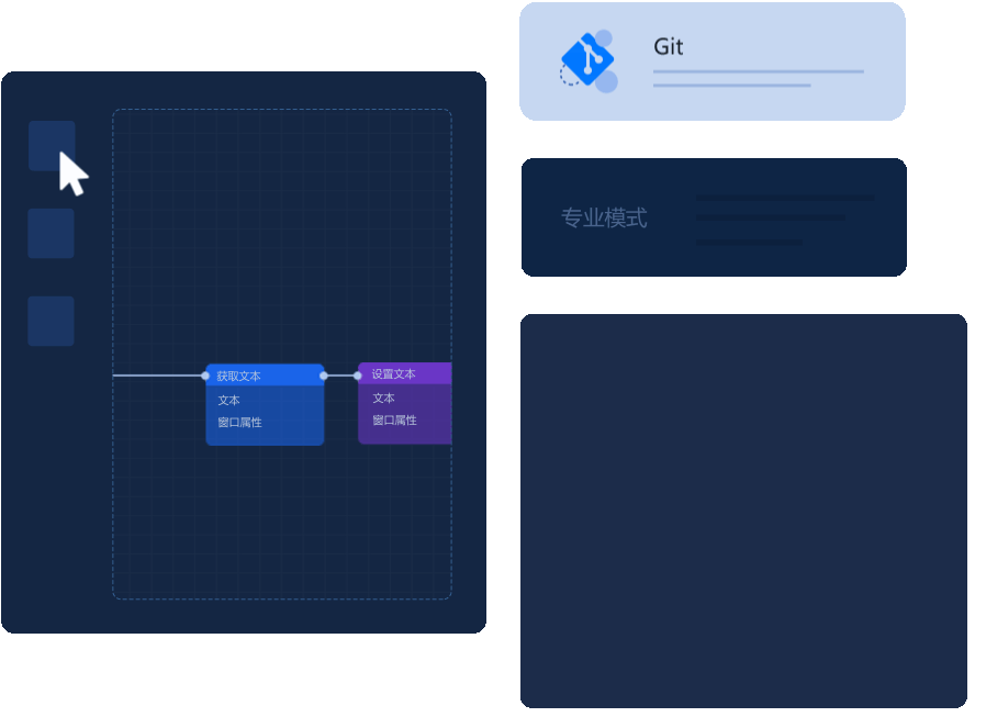 设计器支持“新手模式”和“专家模式”,新手可拖拉拽操作组件,开发入门更轻松;专家模式可使用第三方IDE及已封装组件,支持调试和Git,开发效率更高。