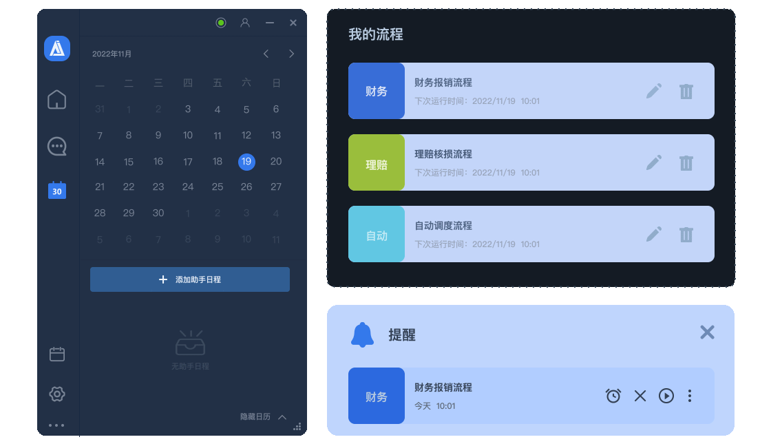 员工可手动运行流程,在运行过程中可调整运行方向、输入关键参数,确保流程安全灵活的运行,实现人机交互合作的智能自动化,高效协助员工完成任务。